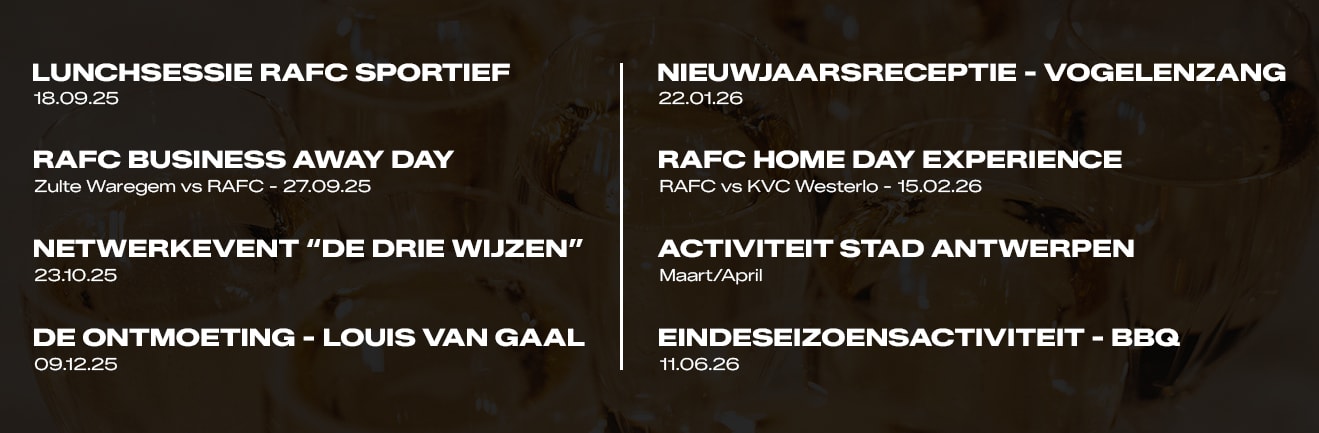 Wil jij lid worden van onze business club? Contacteer business@rafc.be