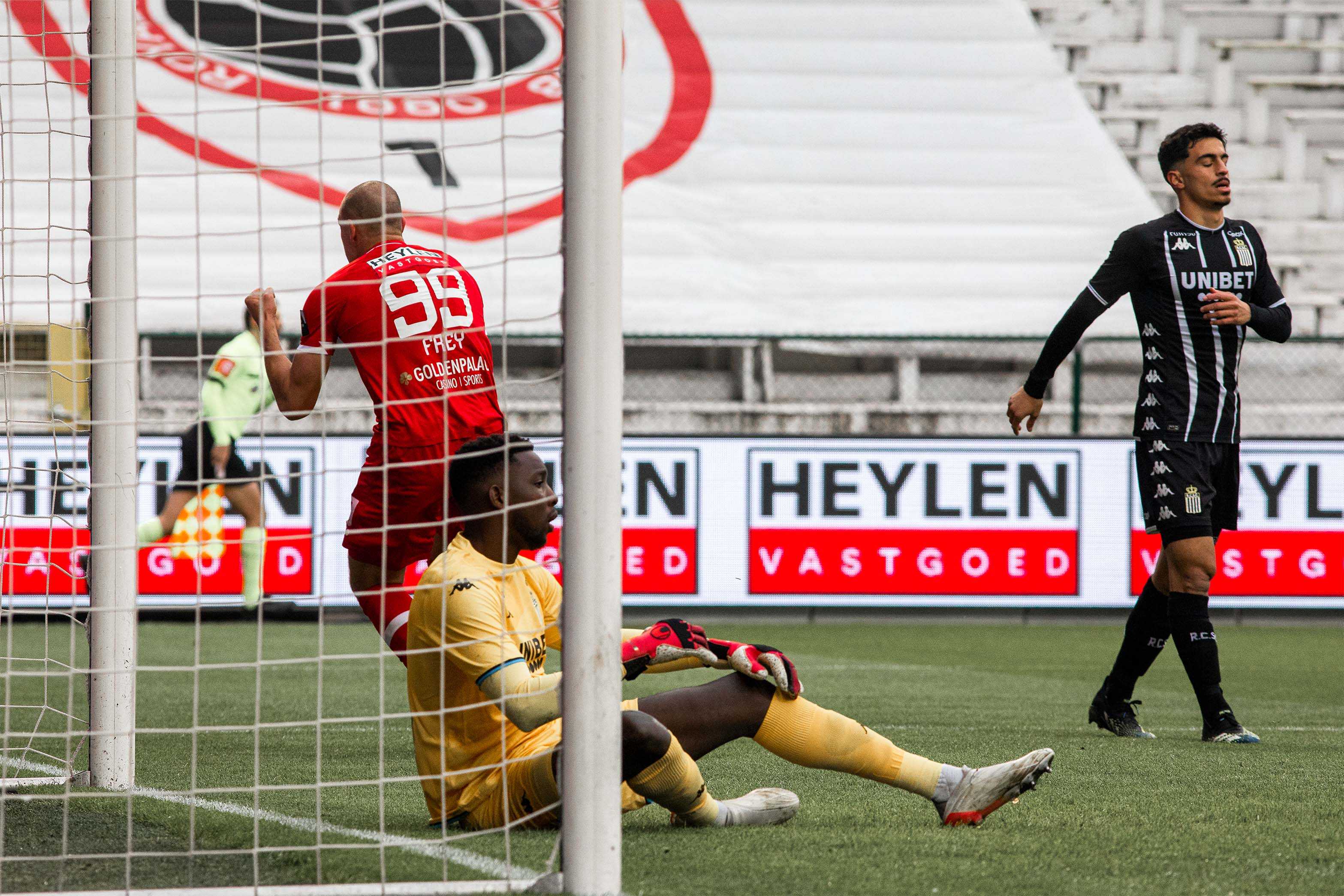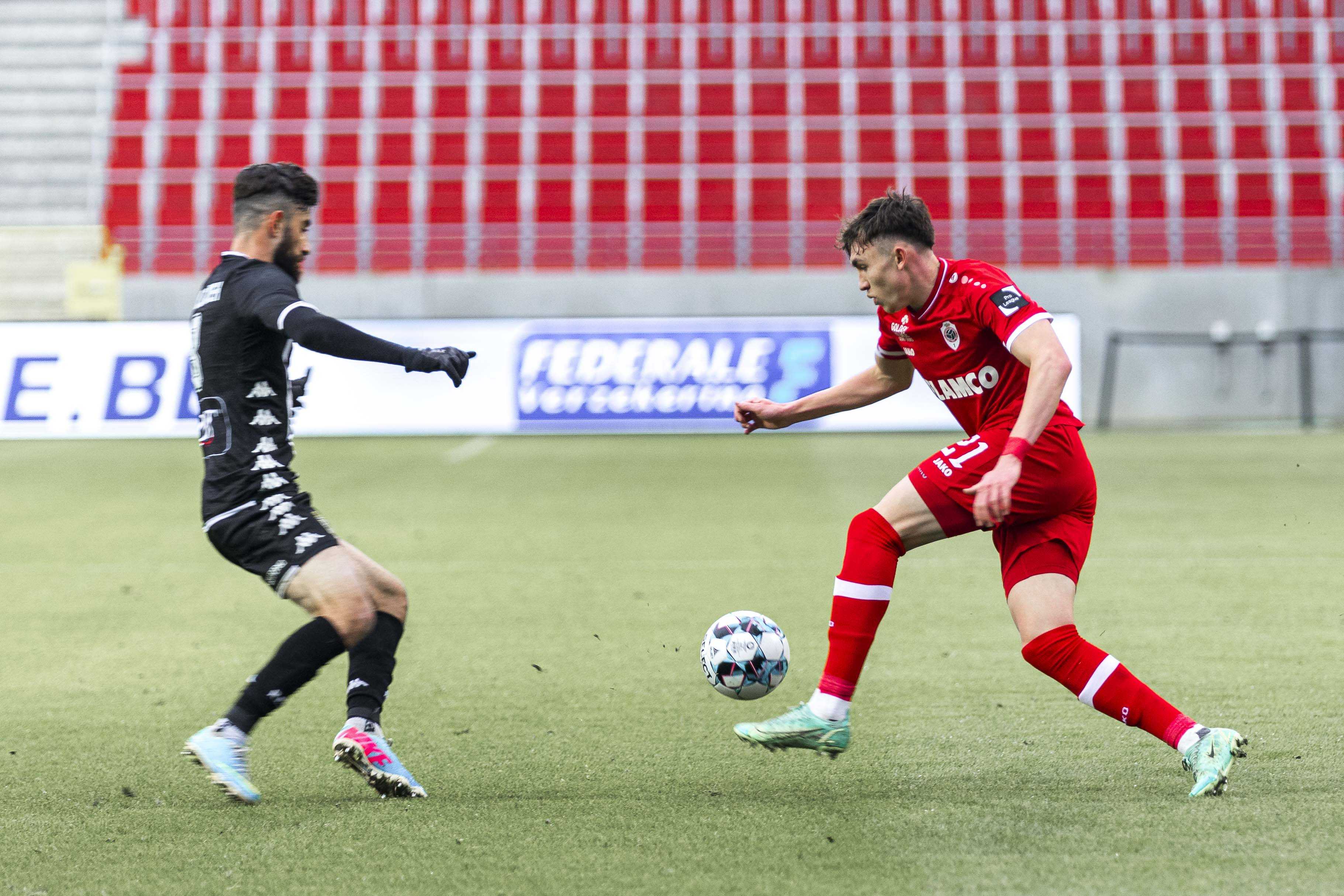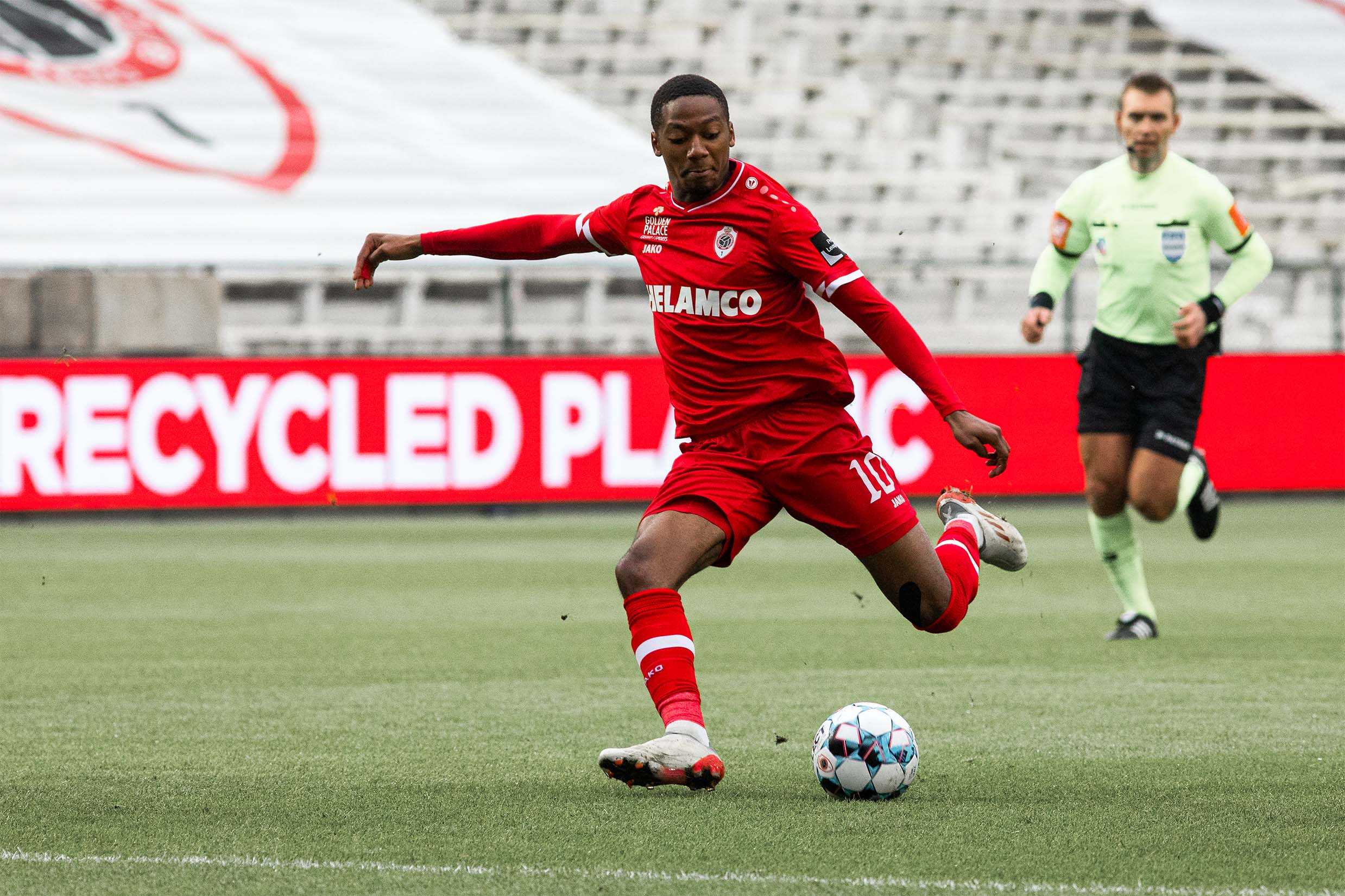 Er hing een kil windje, maar het waren toch vooral de lege Bosuiltribunes die deden huiveren. Na een flauwe studieronde van een tiental minuten duwden de Reds met een forse tempoversnelling de temperatuur gelukkig de hoogte in. Eerst was er een uitstekende schietkans voor Balikwisha, even later verstuurde hij een uitstekende assist op Frey. De Zwitser twijfelde niet en kopte het leer voorbij een tevergeefs grabbelende doelman Kamara: 1-0! The Great Old had er zin in en trok snel opnieuw ten aanval. Benson met de heerlijke dribbel en assist, Frey met de trefzekere afwerking: 2-0! Eén minuut later had Yusuf al de 3-0 aan de voet, maar hij vergat de bal over de bezoekende doelman te stiften. De roodwitte storm ging liggen en Charleroi probeerde te reageren via Bayo, maar Butez zat er goed tussen. RAFC controleerde en dook met de dubbele voorsprong de rust in.