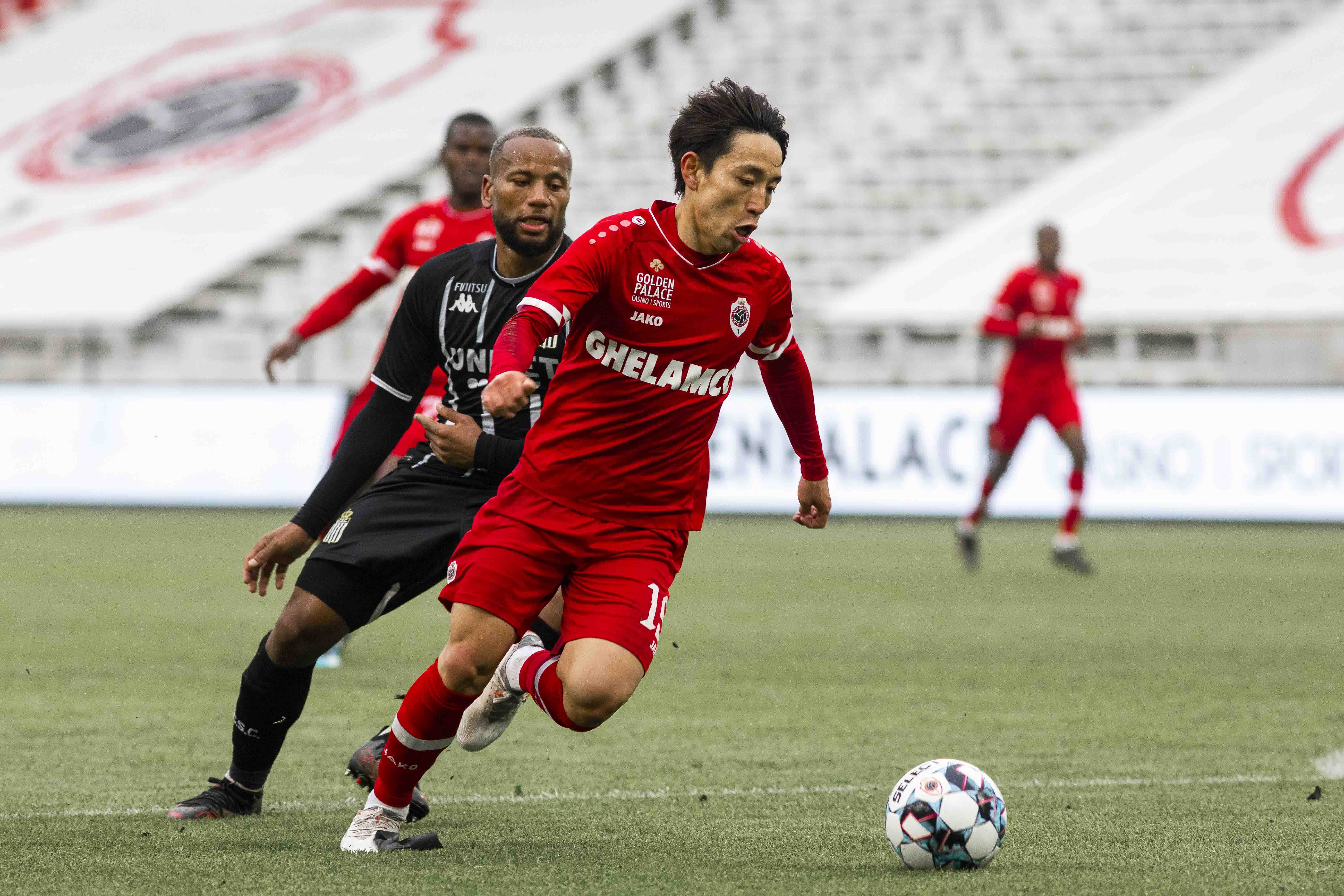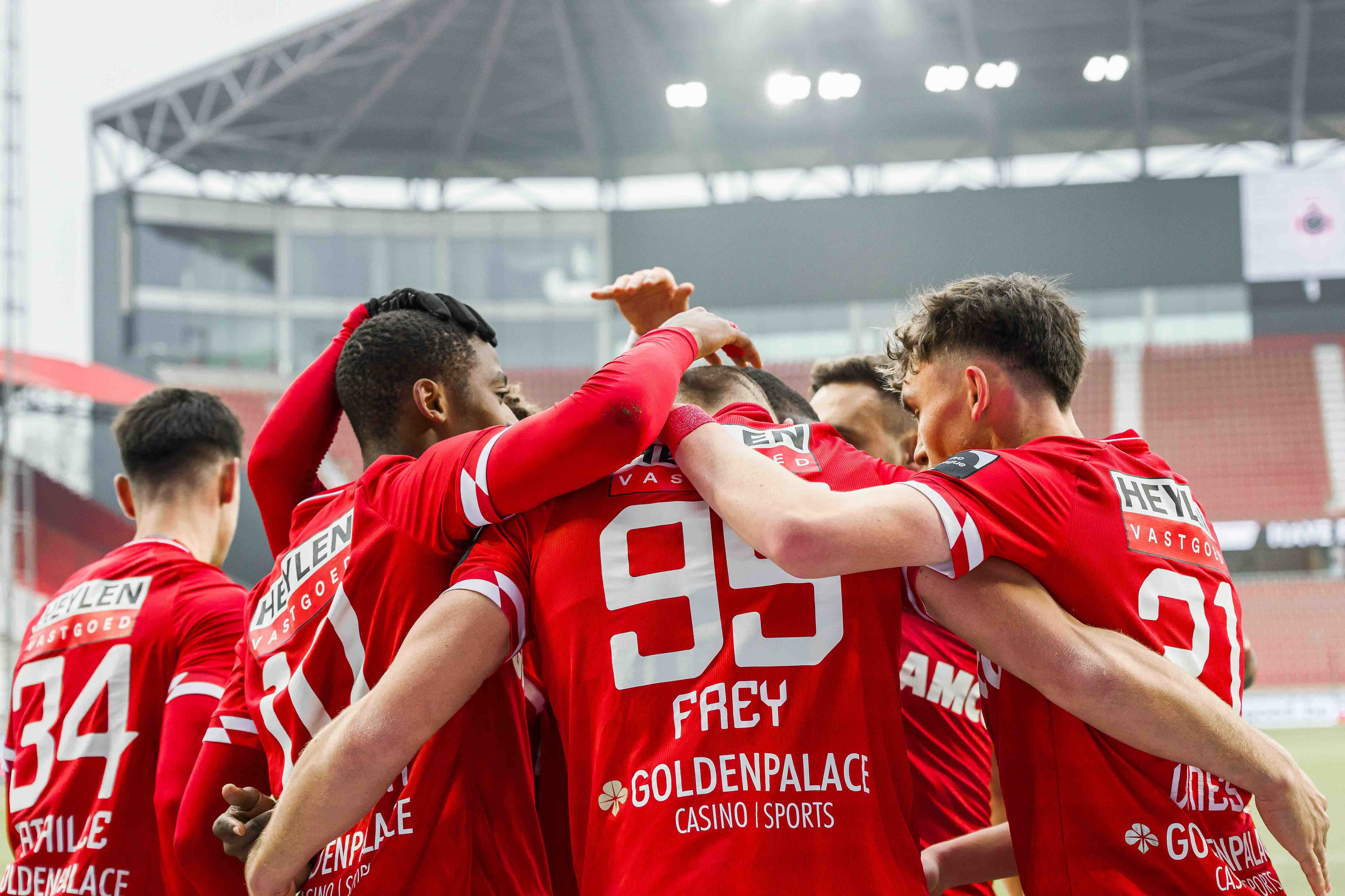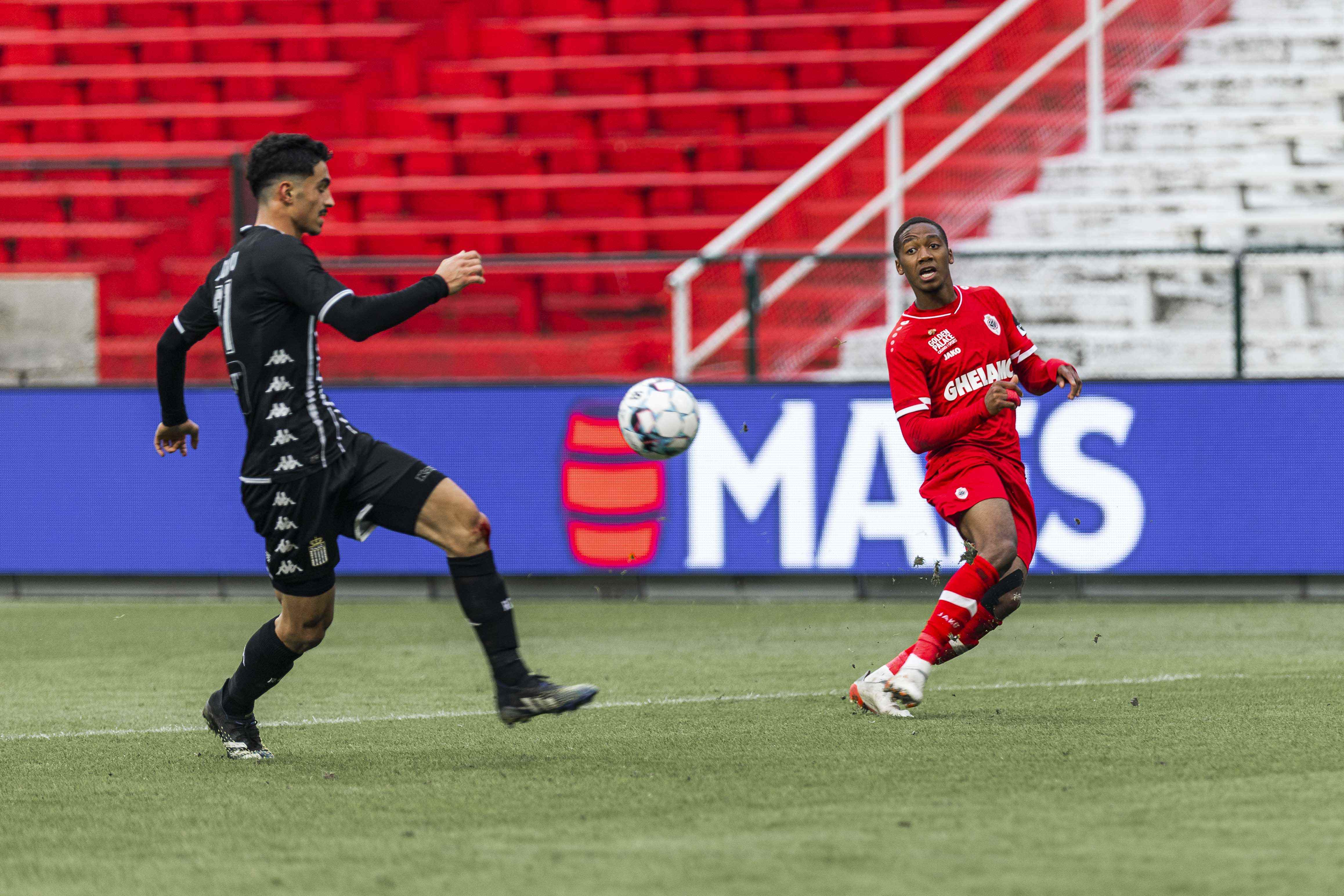 Er hing een kil windje, maar het waren toch vooral de lege Bosuiltribunes die deden huiveren. Na een flauwe studieronde van een tiental minuten duwden de Reds met een forse tempoversnelling de temperatuur gelukkig de hoogte in. Eerst was er een uitstekende schietkans voor Balikwisha, even later verstuurde hij een uitstekende assist op Frey. De Zwitser twijfelde niet en kopte het leer voorbij een tevergeefs grabbelende doelman Kamara: 1-0! The Great Old had er zin in en trok snel opnieuw ten aanval. Benson met de heerlijke dribbel en assist, Frey met de trefzekere afwerking: 2-0! Eén minuut later had Yusuf al de 3-0 aan de voet, maar hij vergat de bal over de bezoekende doelman te stiften. De roodwitte storm ging liggen en Charleroi probeerde te reageren via Bayo, maar Butez zat er goed tussen. RAFC controleerde en dook met de dubbele voorsprong de rust in.