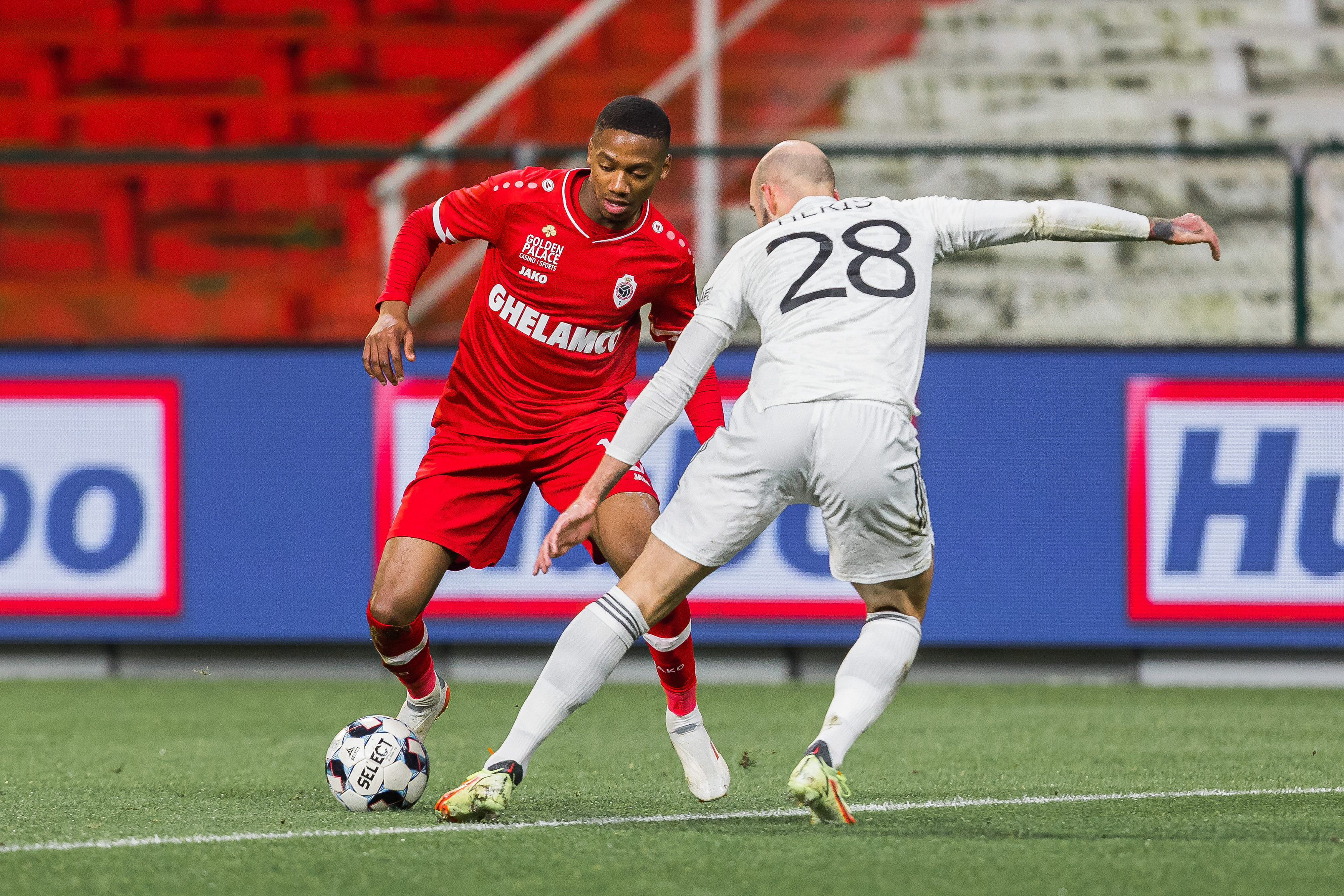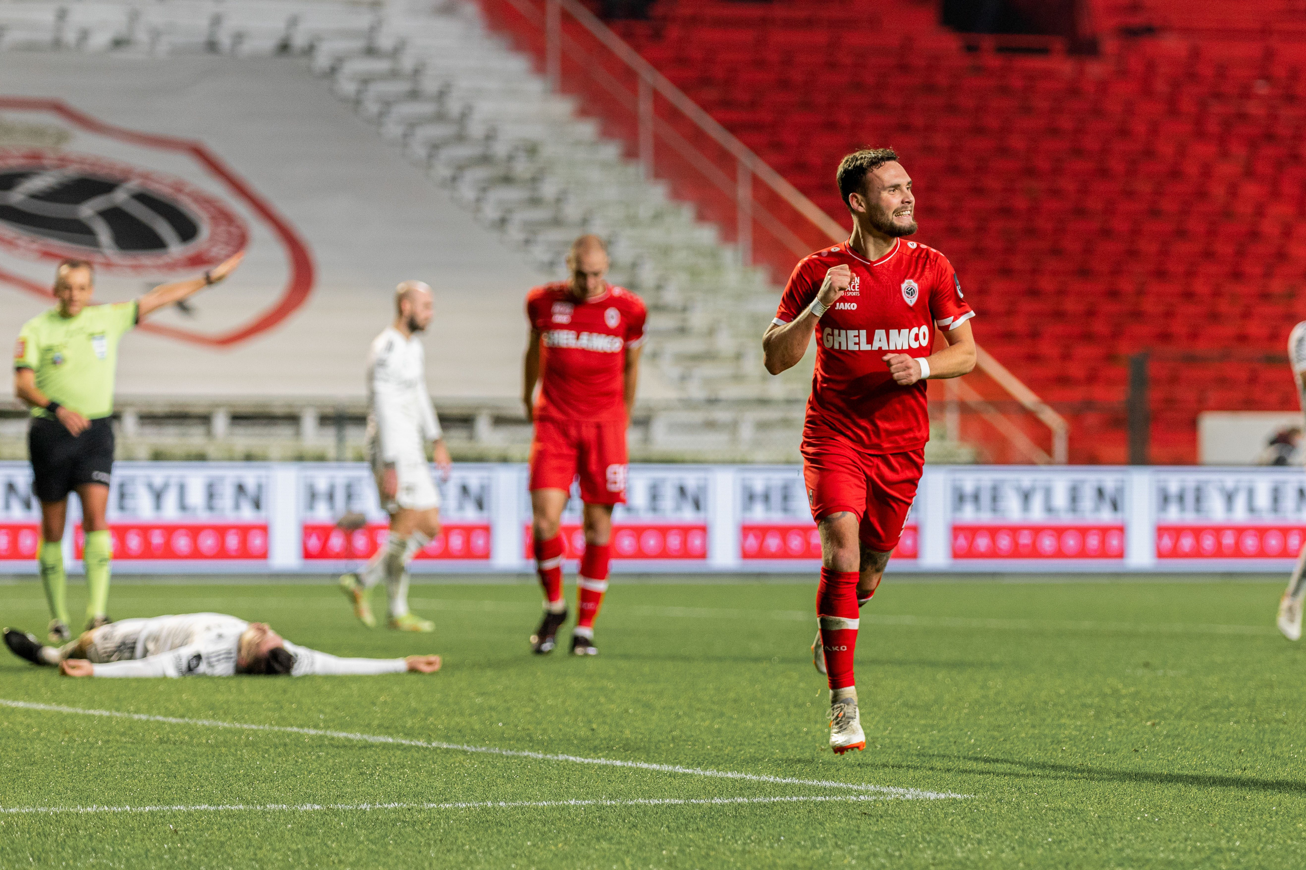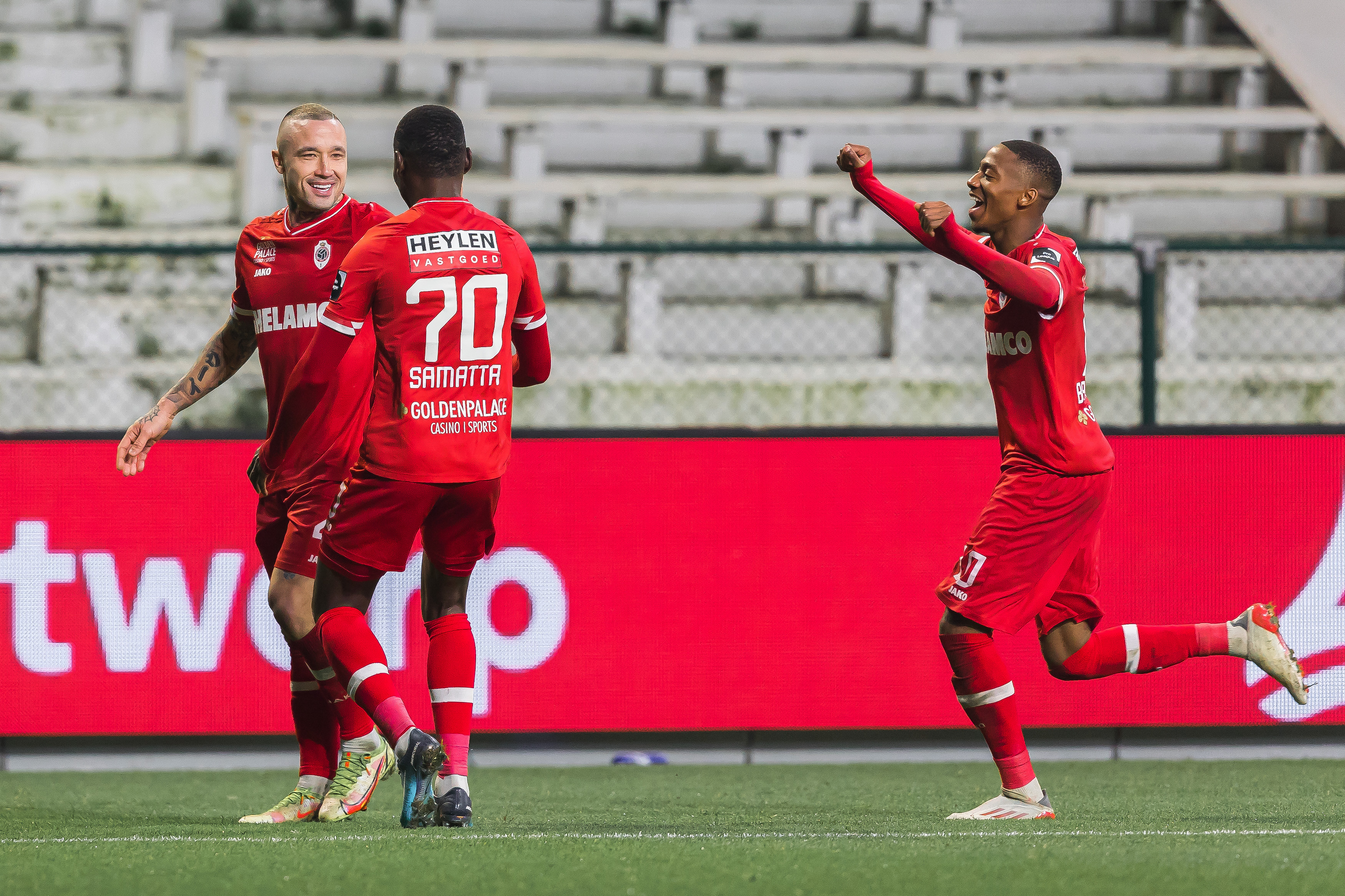 Van bij de aftrap was het zoeken naar een opening voor de Reds. De bezoekers hadden hun defensief blok op orde en loerden op een foutje bij Antwerp om tegen te prikken. En bijna met succes. Verstraete wilde achteraan met een kopbal een ploegmaat bedienen, maar kopte te zwak. Prevljak (Eupen) zat er goed tussen en ging zijn kans, Butez bracht secuur redding. Niet veel later sneed Benson een eerste keer door de Eupense verdediging. Nu was het aan de bezoekende doelman om zich te tonen. Ook Gerkens mocht een keer uithalen, maar hij zag zijn schuiver net naast het doel belanden. Antwerp kon 5 minuten later opnieuw gevaarlijk zijn via dribbelkont Manuel Benson. Hij zwiepte de bal op de kruin van Samatta en die werkte knap af: 1-0. The Great Old drukte nu door. De infiltratie van Ritchie was knap, de afwerking net niet goed genoeg. De rust was in zicht. Het signaal voor Benson om zich nog maar eens door te zetten. Deze keer waren voorbereiding en afwerking perfect, 2-0. Een assist én een doelpunt van Benny: RAFC zat op rozen. Voor het de kleedkamer kon induiken, slikte The Great Old toch nog de onverwachte aansluitingstreffer. Tegen de snoeiharde uithaal van Keita (Eupen) viel niets te beginnen: 2-1.