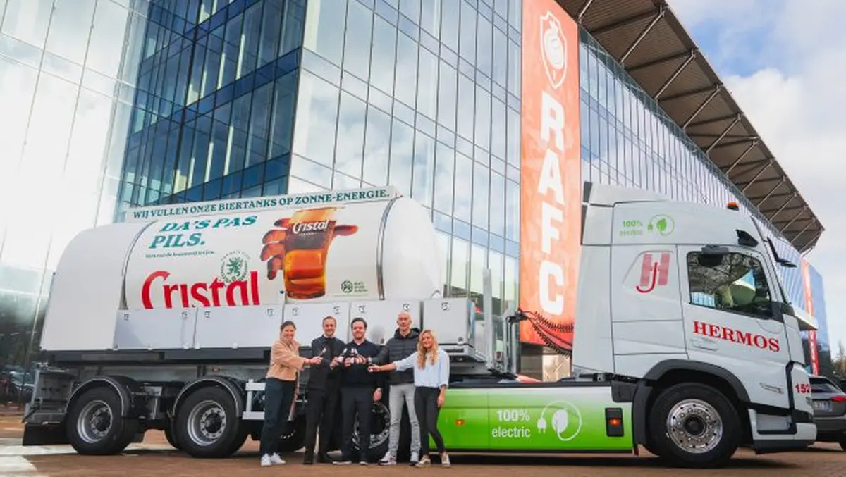 Primeur op Belgische wegen: allereerste elektrische tankbiertruck levert verse Cristal op de Bosuil