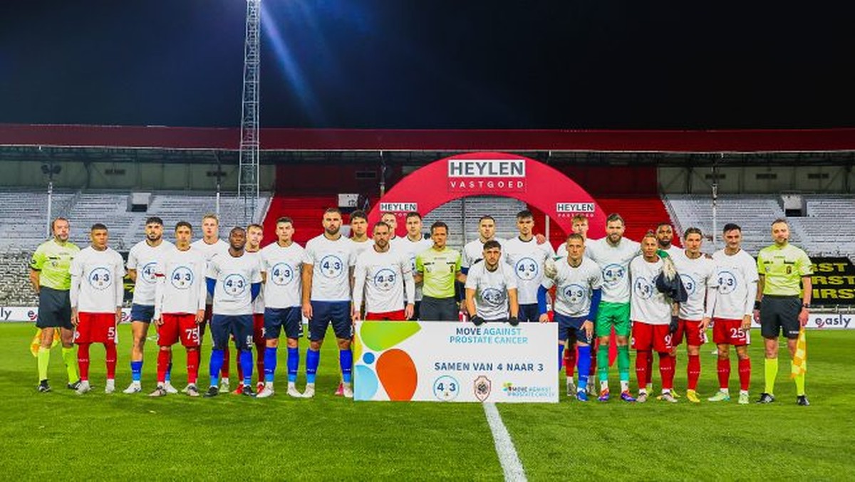 Afgelopen weekend vestigde Royal Antwerp Football Club de aandacht op prostaatkanker. Zowel de spelers van RAFC als van FCV Dender EH betraden onze Heilige Grond met shirts met het campagnebeeld #FromFourToThree. Want elke dag sterven er in ons land 4 mannen aan prostaatkanker. Medisch advies op basis van wetenschappelijk onderzoek speelt een cruciale rol in het vroegtijdig opsporen van prostaatkanker en kan levens redden. Toch wordt preventie vaak over het hoofd gezien door het taboe dat rond deze ziekte hangt. Recent leerden maar liefst 65 aanwezigen op een door RAFC georganiseerde infosessie rond prostaatkanker, dankzij de inzichten van uroloog Marc Claessens en onze eigen clubarts Wim Geerts, hoe dit aantal teruggebracht kan worden van 4 naar 3. Meer te weten komen? https://bit.ly/MoveAgainstProstateCancer #AntwerpFirst #HealthFirst